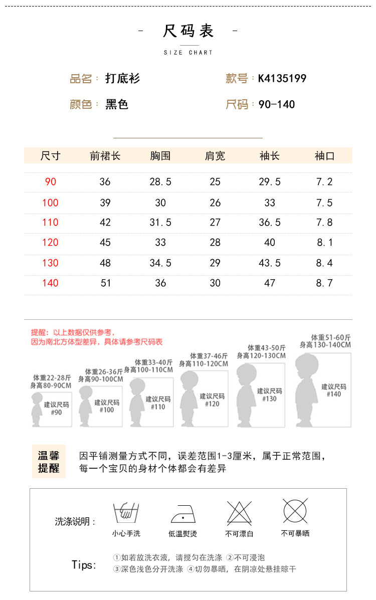 春秋款潮棉质长袖字母打底衫男童女童高品质上衣贴布刺绣纯色打底