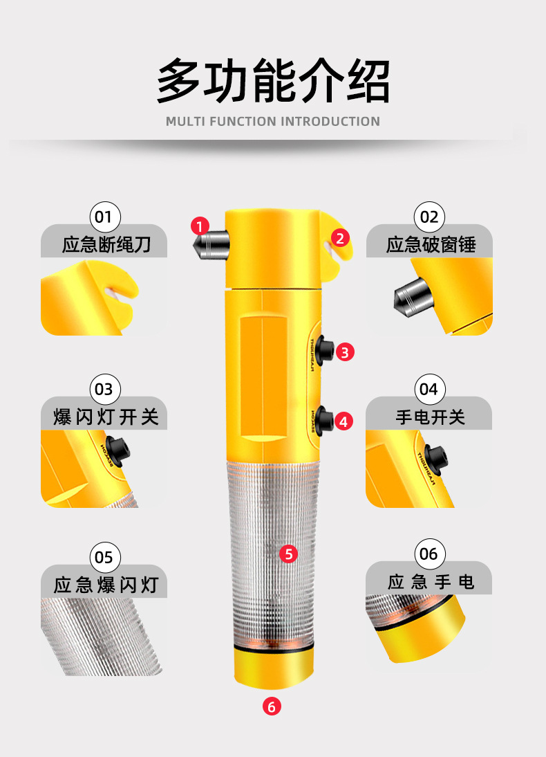 车载多功能四合一安全锤救生锤汽车逃生锤破窗器应急工具汽车用品